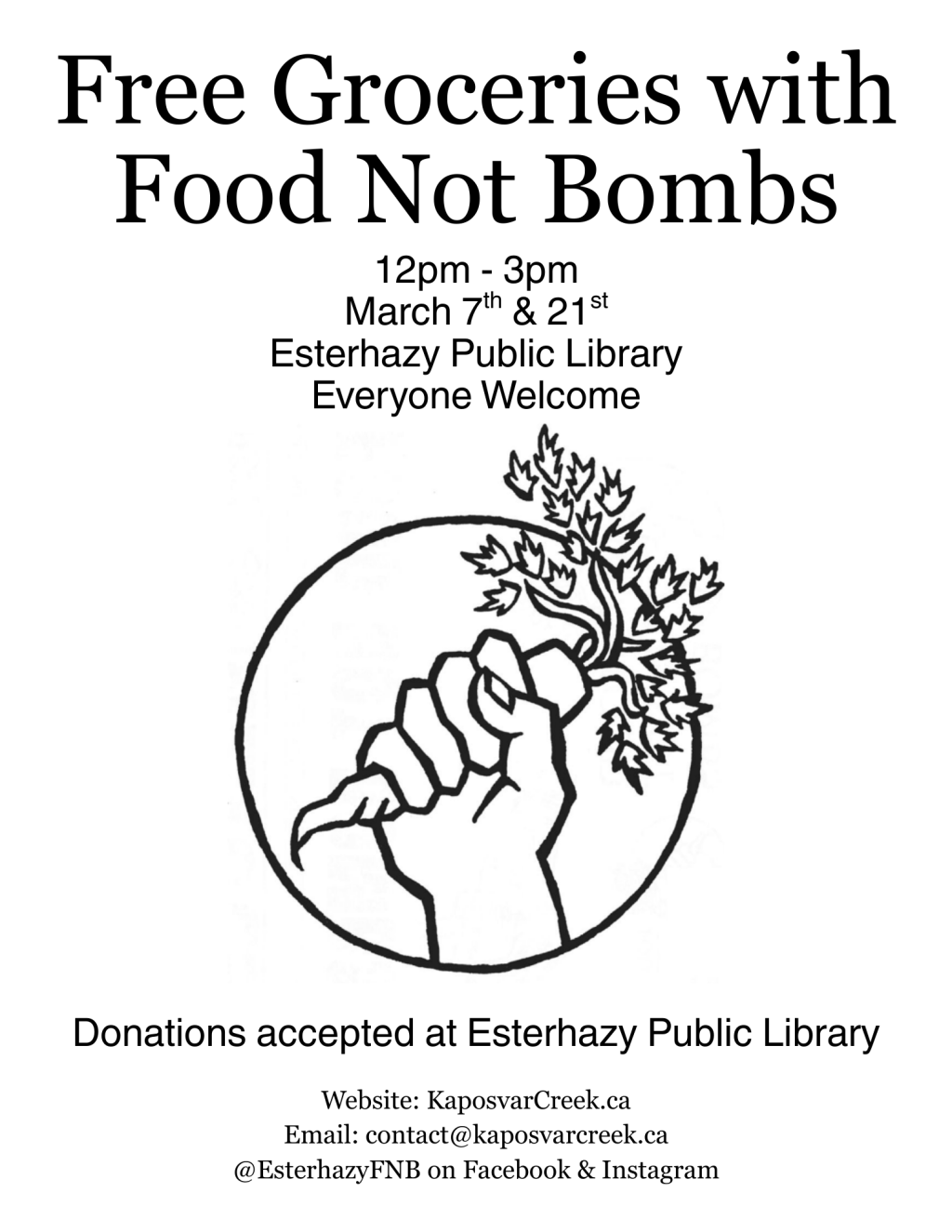 We will be at Esterhazy Public Library on March 7th and 21st from 12pm – 3pm.
